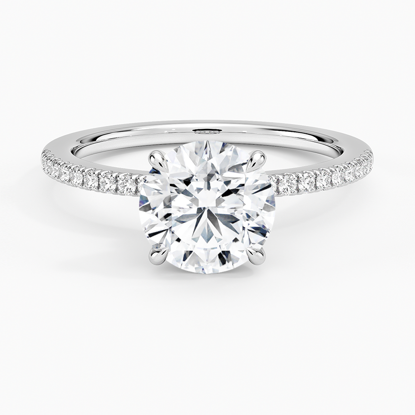 טבעת אירוסין יוקרתית מבית אולטימה תכשיטים, משובצת ביהלום מרכזי עגול במשקל 1.50 קראט, בשילוב מיקרו פאווה והילה נסתרת שמעצימים את הברק ומדגישים את יופייה של האבן המרכזית. חיתוך היהלום העגול נחשב לקלאסי והנצחי ביותר, כזה שמסמל אהבה טהורה ומושלמת.