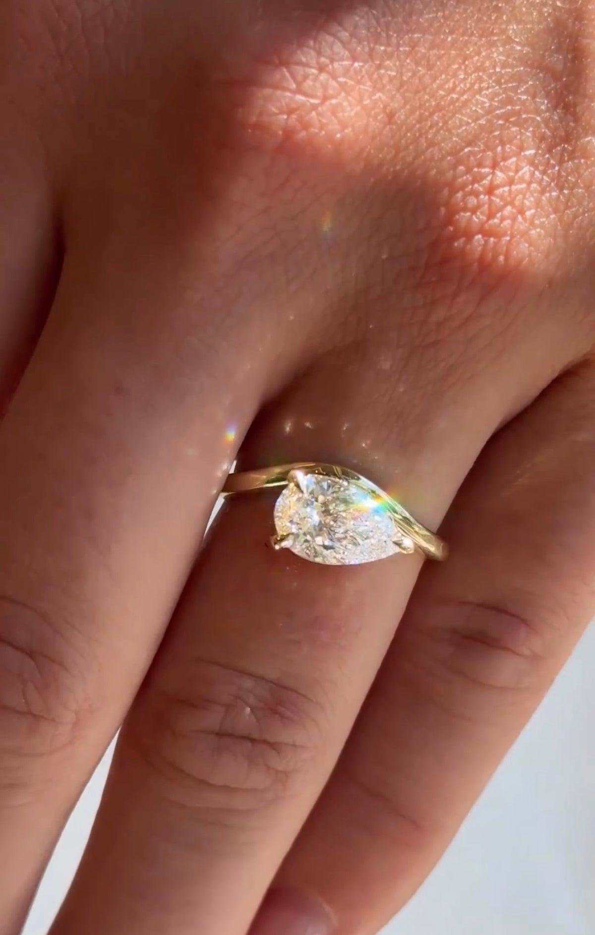 טבעת טוויסט יהלום טיפה 1.5 קראט בשיבוץ מזרח מערב