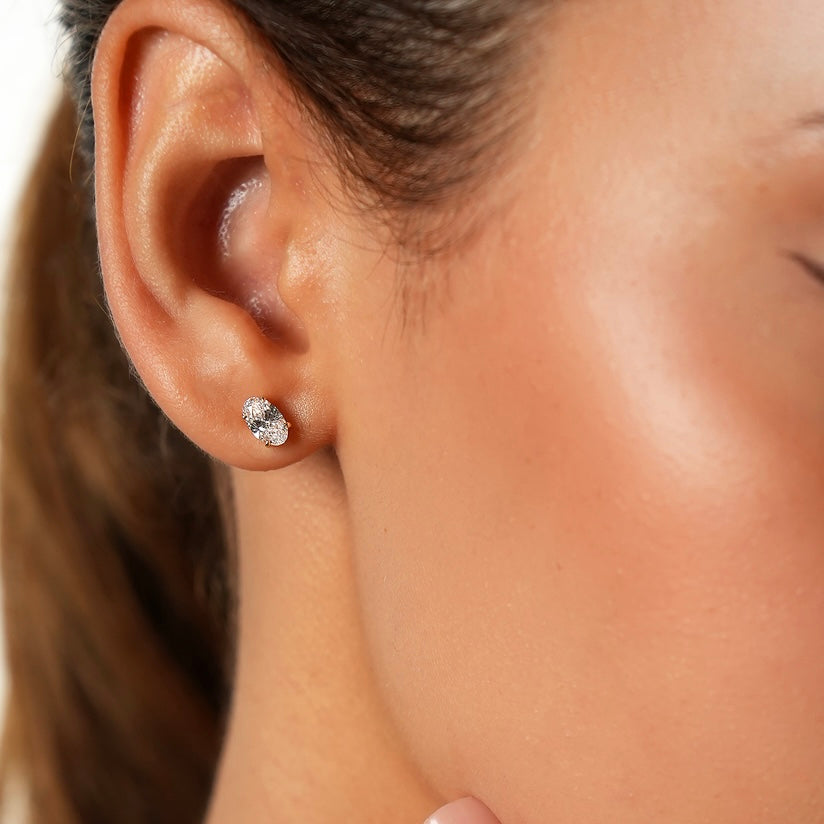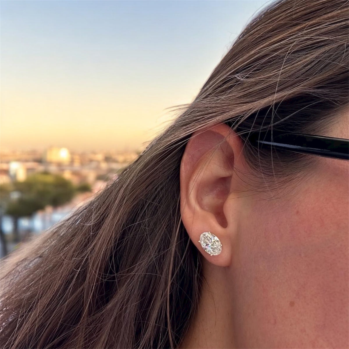 עגילי יהלומים אובל צמודים מבית אולטימה תכשיטים, משובצים ביהלומי מעבדה נצחיים באיכות וברק, בחיתוך אובל קלאסי שמעניק ברק יוקרתי ומראה נוכח ומרשים. העיצוב הצמוד מבטיח נוחות מושלמת ליום-יום ומוסיף טאץ’ אלגנטי לכל הופעה.