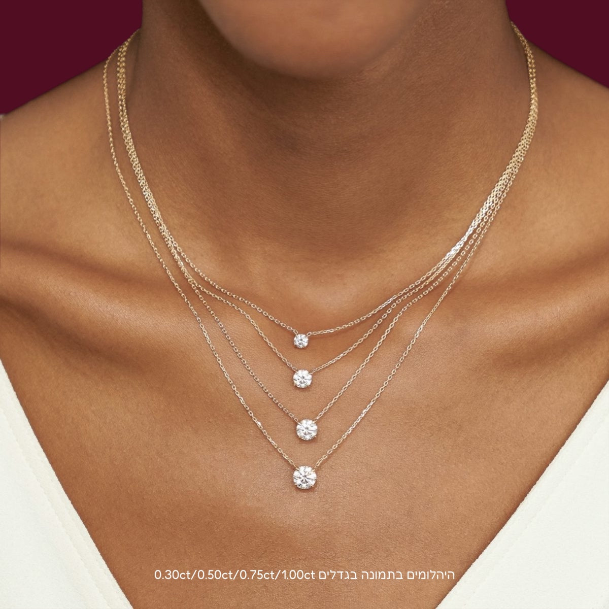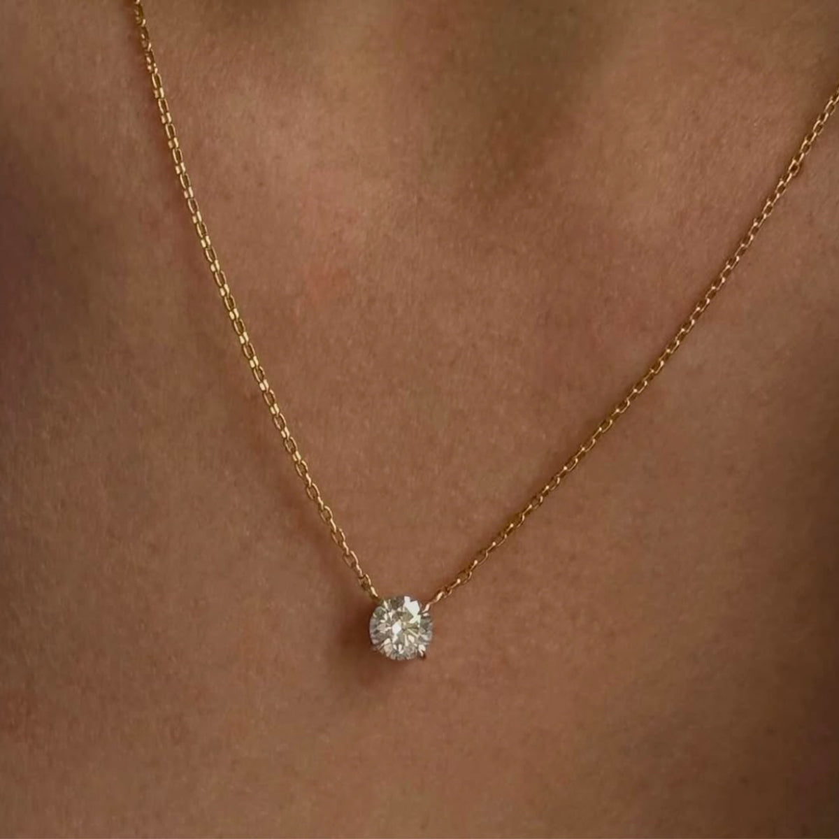 שרשרת אלגנטית מבית אולטימה תכשיטים, עם יהלום מעבדה בחיתוך עגול קלאסי בשיבוץ מרחף.
