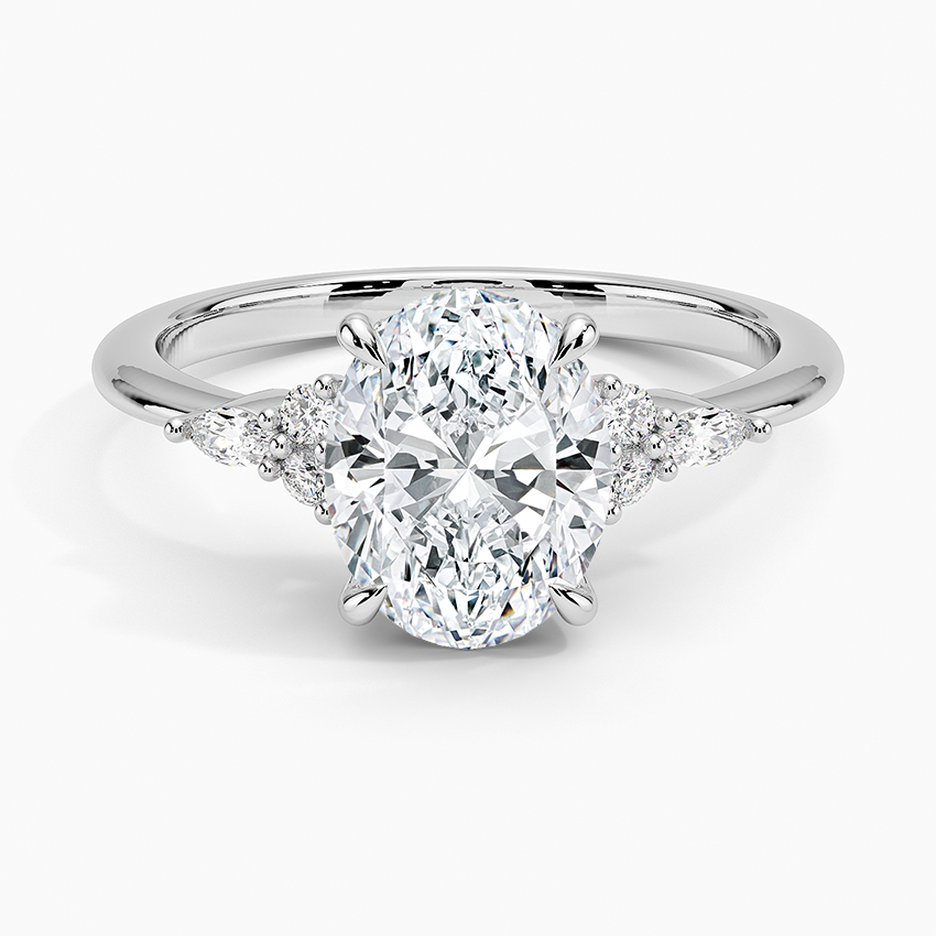 העיצוב המשלב בין האבן המרכזית בצורת אובל לבין יהלומי הצד מעניק לטבעת מראה יוקרתי, קלאסי ויחד עם זאת מודרני – טבעת אירוסין מושלמת לאישה שמחפשת שילוב של אלגנטיות ועדינות עם נוכחות עוצמתית