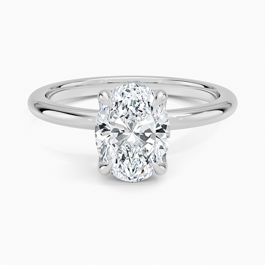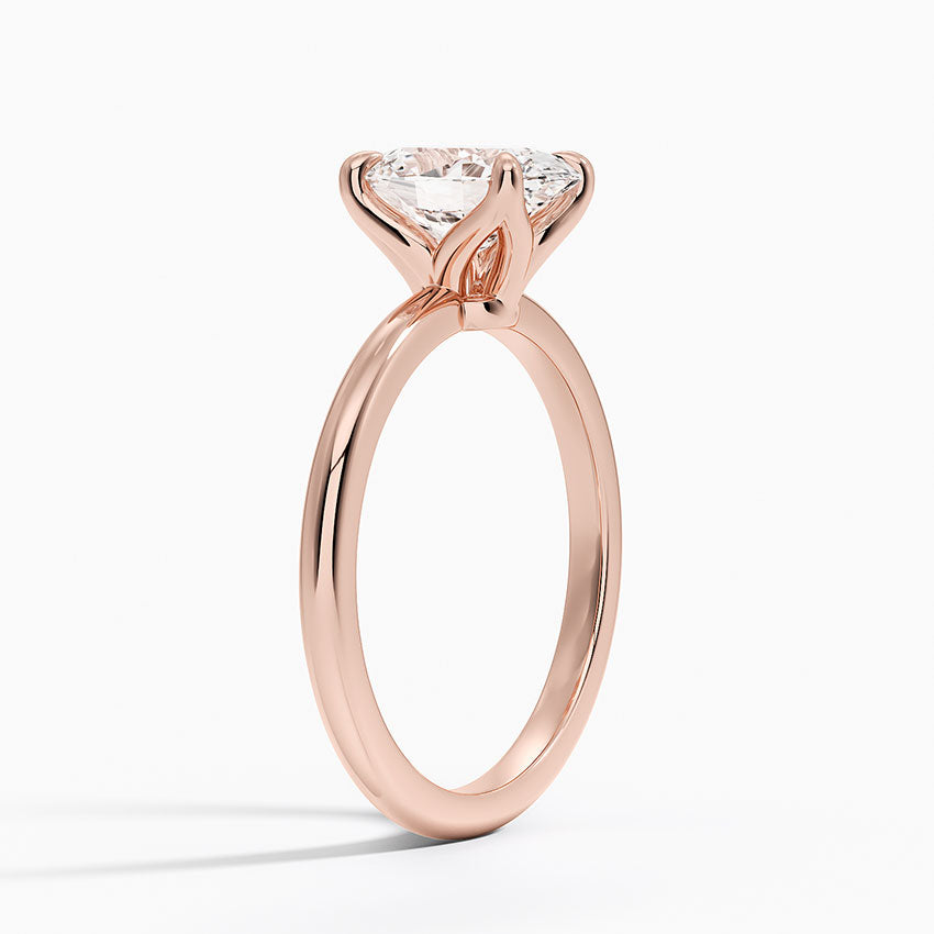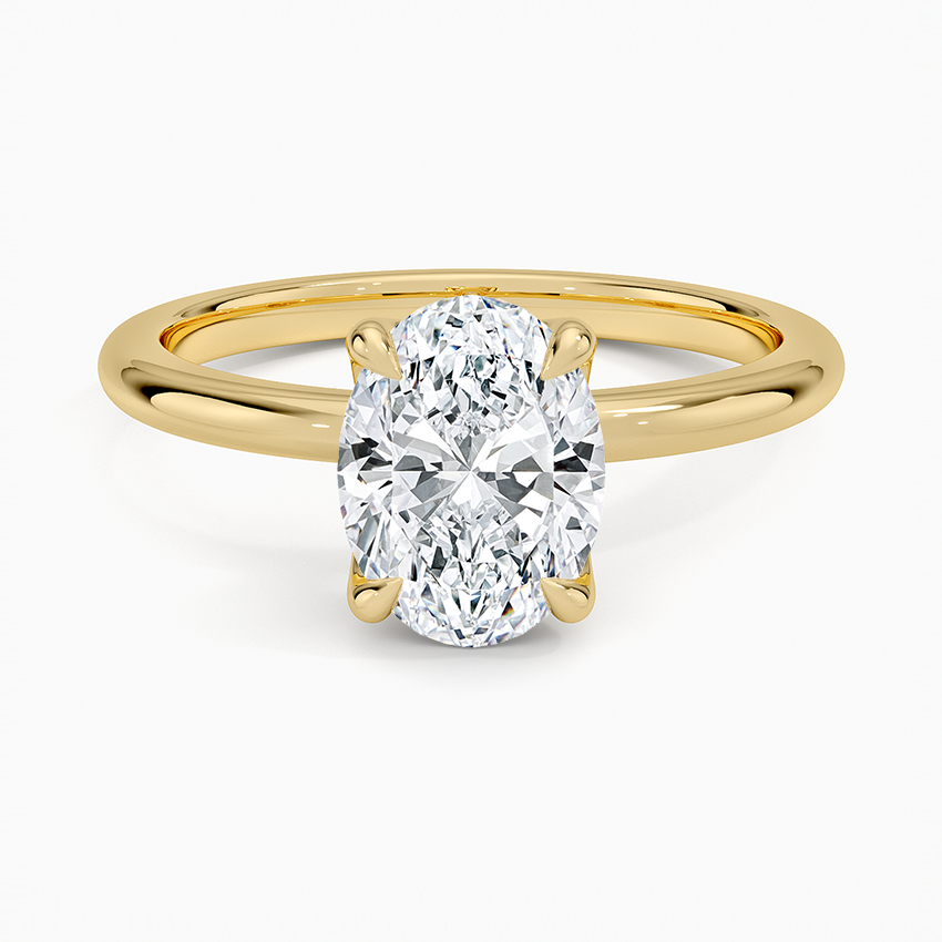 טבעת אירוסין יוקרתית מבית אולטימה תכשיטים, עם יהלום מעבדה מרכזי אובל במשקל 1.5 קראט בשיבוץ טוליפ קלאסי. שיבוץ זה מעניק ליהלום נוכחות מרשימה תוך שמירה על זרימה טבעית והרמונית של העיצוב, המזכירה פרח עדין הפורח על האצבע.