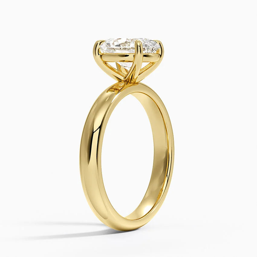 טבעת אירוסין אלגנטית מבית אולטימה תכשיטים, עם יהלום מעבדה מרכזי אובל במשקל 1.5 קראט בשיבוץ סוליטר מוקפד. הטבעת בעובי 3 מ"מ מעניקה מראה עדין ומדויק, שמדגיש את האבן המרכזית ומעניק נוחות מקסימלית לענידה.