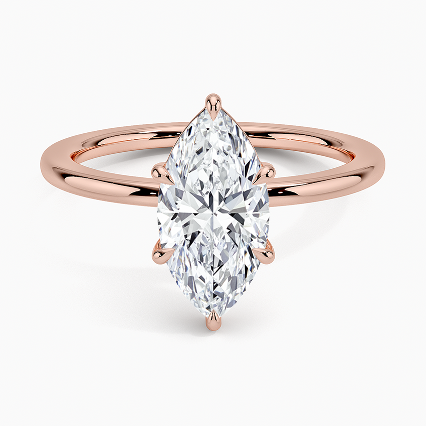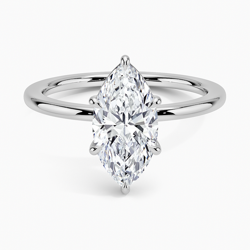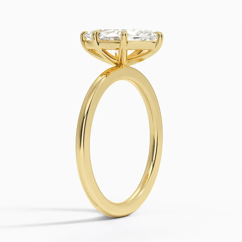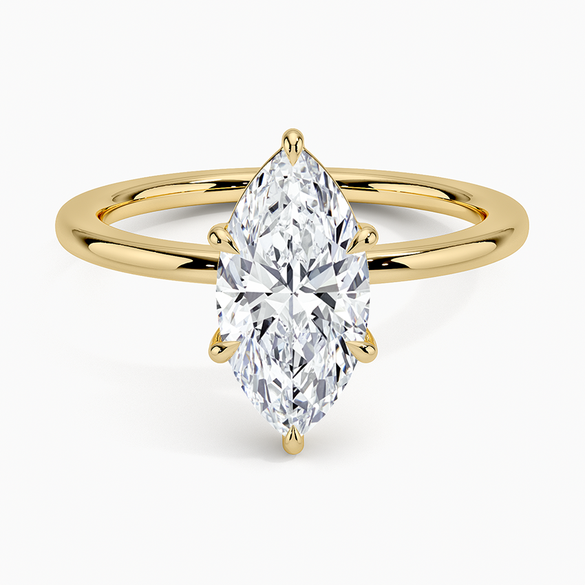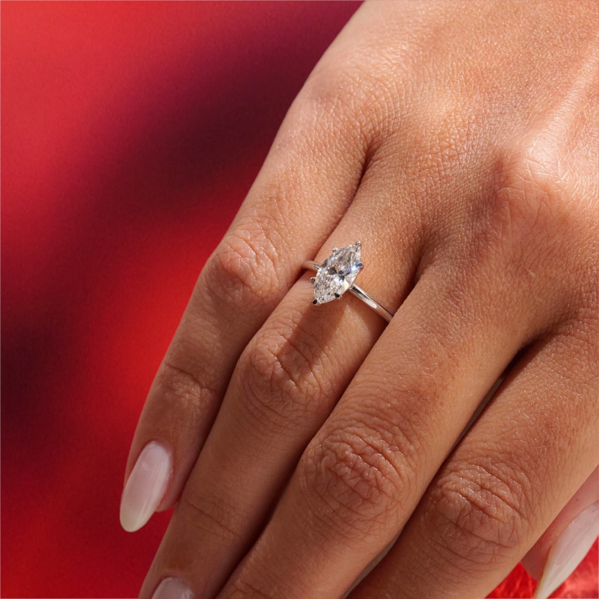 טבעת אירוסין קלאסית ומרשימה, בעיצוב סוליטר שמדגיש את יהלום מרקיזה מרכזי במשקל 1.2 קראט. צורת המרקיזה האלגנטית מעניקה לטבעת מראה מוארך ומחמיא, עם נוכחות יוקרתית שמושכת את כל העיניים.